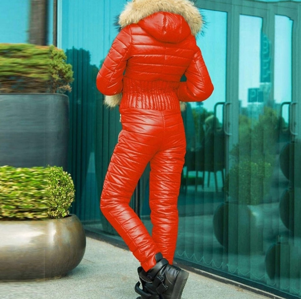 Women’s Winter Onesies Ski Jumpsuit Hooded Fur Collar Outdoor Sports Wat